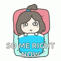 A cartoon girl lies in bed, unable to sleep, with the text 'SO ME RIGHT NOW' displayed.