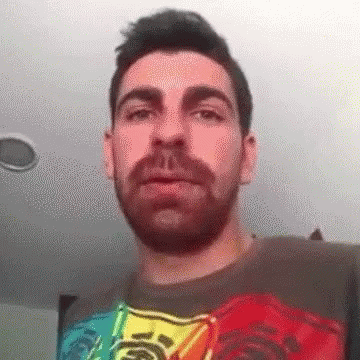 Cepeda makes a funny face while wearing a vibrant rainbow shirt, showcasing his expressive humor.