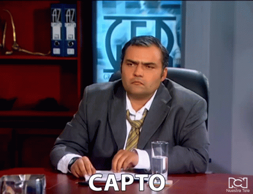 Enrique Carriazo, a man in a suit and tie, sits at a desk with the word 'CAPTO' displayed.