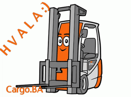 A cheerful cartoon forklift winks, with 'HVALA :)' (Thank You) and 'Cargo.BA' text displayed.