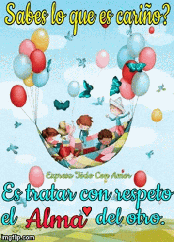 A sweet message defining affection as respecting the Alma (soul) of others, with children, balloons, and butterflies.