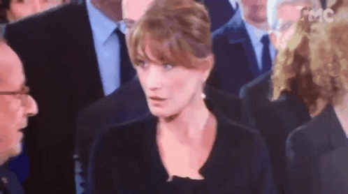 Carla Bruni appears shocked while François Hollande looks on during a public event.