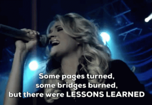 Carrie Underwood performs 'Lessons Learned' live, with lyrics displayed on screen during her powerful vocal delivery.