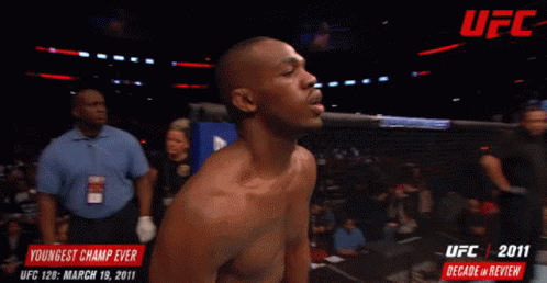 Jon Jones performs his iconic cartwheel entrance at UFC 128, celebrating his status as the youngest champ ever.