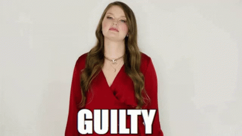 Kathryn Dean delivers a guilty verdict in a legal setting, wearing a red dress with the word 'GUILTY' displayed.