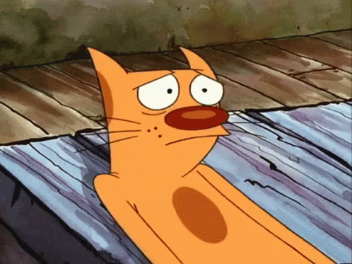 Cat from the classic cartoon CatDog is seen lying down, performing a relatable facepalm gesture, looking utterly annoyed.