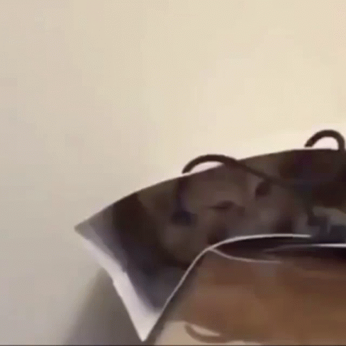 A cat is inside a paper bag, making a printed face on the bag appear to move and come alive.