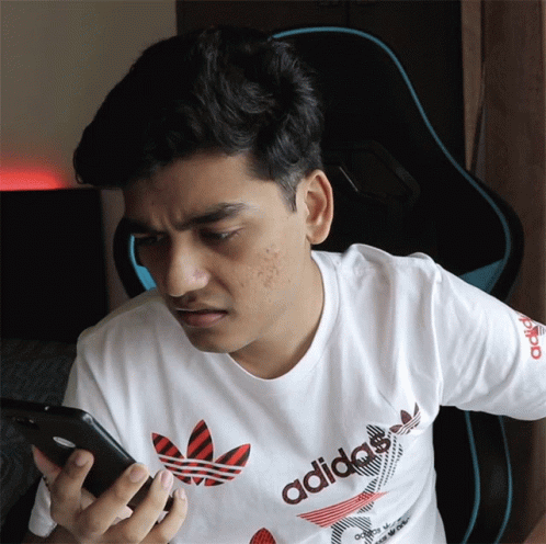 Abhyudaya Mohan looking concerned and confused while holding his phone, then looking up.