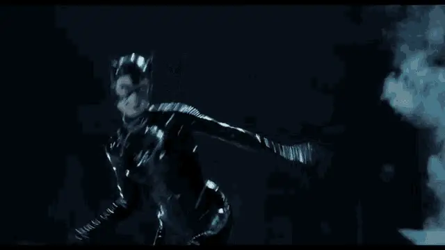 Michelle Pfeiffer as Catwoman, Selina Kyle, in her iconic suit from Batman Returns, striking a pose.