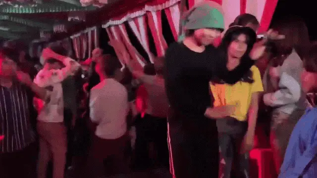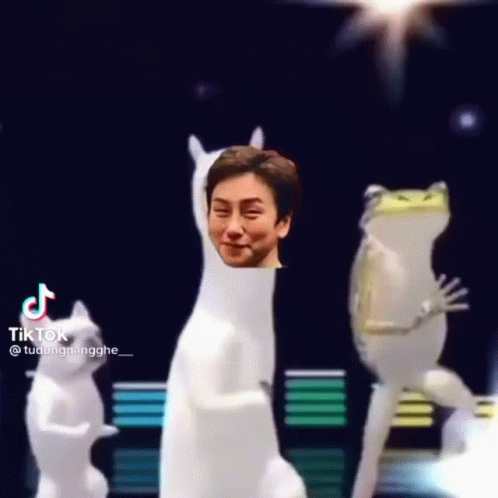 Cau347 meme featuring a dancing llama-like figure with a crying man's face, associated with Miko Lan Trinh, Kenji Hoàng, and Miji Couple.