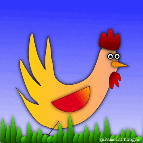 An animated chicken drawing by Pamela Chougne, part of the Cavalry Loop series.