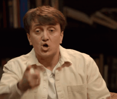 Denis Dorokhov from CHBD (What Happened Next?) reacting with wide eyes and covering his mouth in surprise.