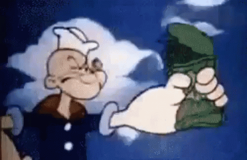 Popeye flexes his muscles, declaring 'I can do it!' in a powerful display of courage and strength and determination.