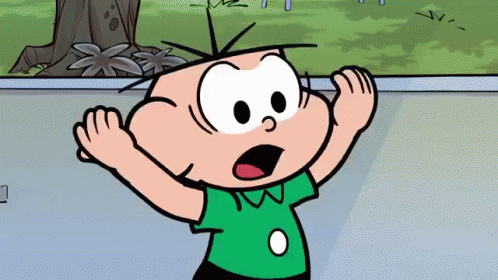 Cebolinha da Turma da Mônica, o personagem de desenho animado, parece chocado e surpreso.