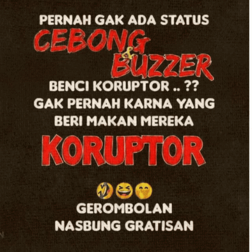 Indonesian political meme criticizing 'Cebong' and 'Buzzer' groups, linking them to corruptors and mentioning Jokowi.