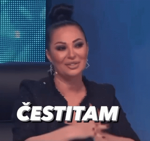 Ceca, the famous singer, expresses her congratulations while sitting in a black jacket.