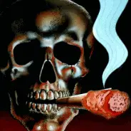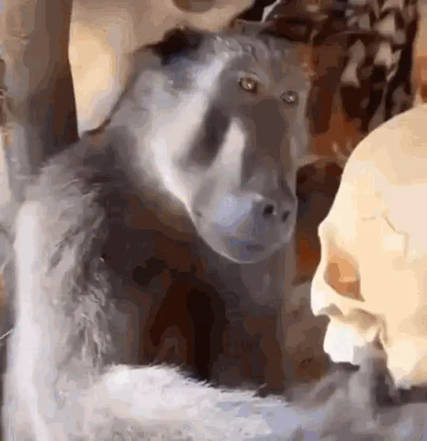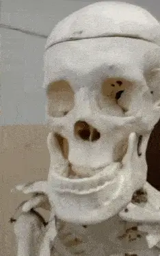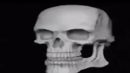 A detailed 3D rendered white skull rotates slowly against a stark black background, showcasing its features.
