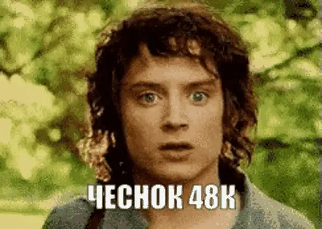 A man reacts with sadness and contemplation to the phrase "NO GARLIC" (НЕТ ЧЕСНОКА).