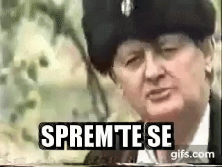 Man in traditional hat calls to Chetniks, declaring a mighty battle is coming.