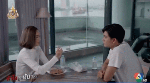 Now Tisanart sweetly feeds Kem Hussawee in a romantic moment from Ch7drama Huachailukphuchai.