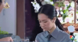 Ching Ching Krittha performs a respectful Thai 'wai' gesture in a gray uniform from the Ch7drama Pisathansa.