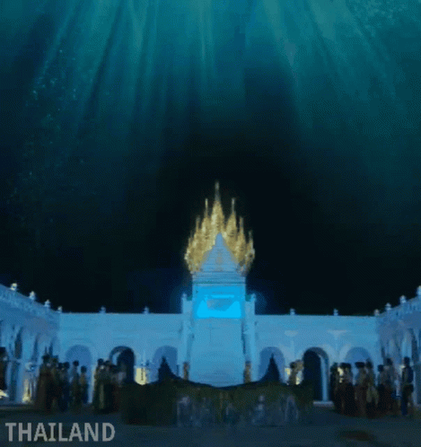 A stunning golden multi-headed Naga (Phaya Naga) statue in Thailand, glowing under mystical light within a grand temple setting.