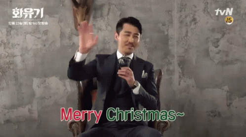 Actor Cha Seung Won delivers a festive Merry Christmas message, seated in a suit and tie.