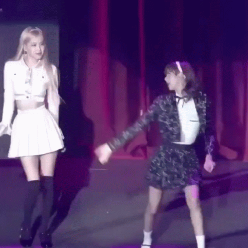 Chaelisa Lichaeng dancing together on stage, holding hands during a performance.