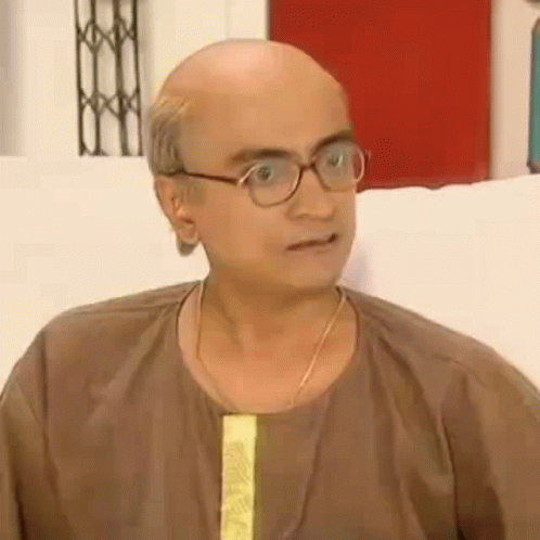 Champaklal, a bald man with glasses, shows an angry expression while speaking.
