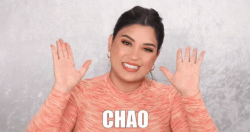 Roccibella waves goodbye, saying 'Chao Adios' while wearing an orange sweater.