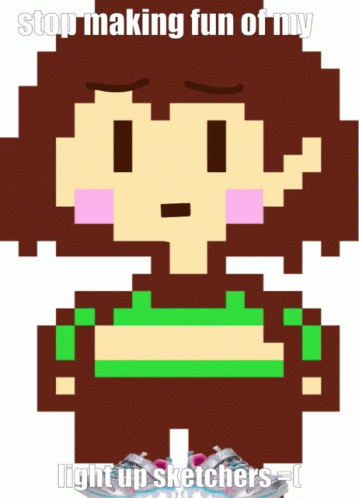 Chara Dreemurr, the pixel art character from Undertale, cries about people making fun of her light up Sketchers.