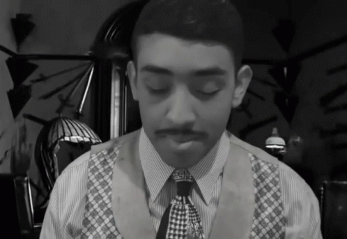 Mike Asmr smoking a cigar in a vintage black and white setting, dressed in a vest and tie, evoking a classic aesthetic.