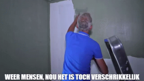 Martien Meiland from Chateau Meiland painting a wall, humorously exclaiming 'Again people, well it is terrible!'