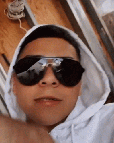Chato De Marca Mp, Pedro Vargas, wearing sunglasses and a white hoodie, flashes a cool V-sign.