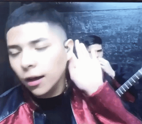 Chato De Marca Mp, possibly Pedro Vargas, listening intently with an in-ear monitor during a performance.