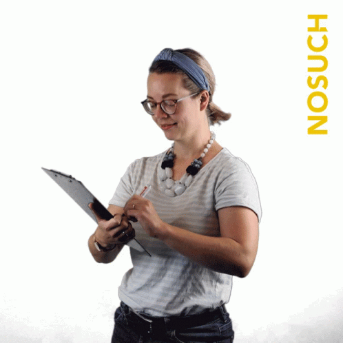 Christine happily checks off her coffee tasks on a clipboard, smiling at the camera.