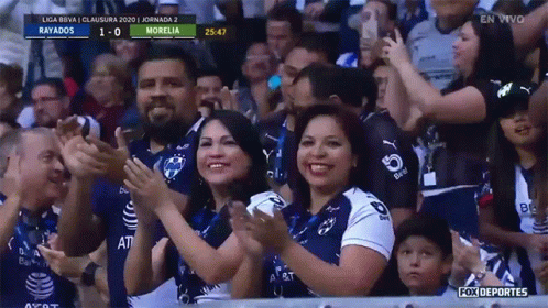 Rayados fans enthusiastically cheer and clap during a Liga MX match where their team is winning.