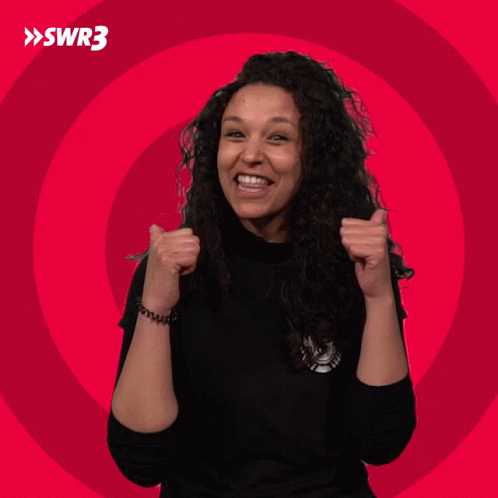 Sara from SWR3 smiles brightly and gives a double thumbs up, showing appreciation and positivity.