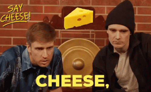 Foil Arms And Hog react to saying 'cheese' with a cheese prop and a gong in the background.