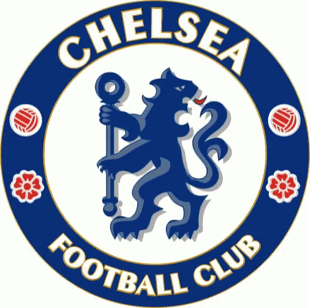 A 3D animated logo of Chelsea Football Club, featuring a blue lion holding a staff.