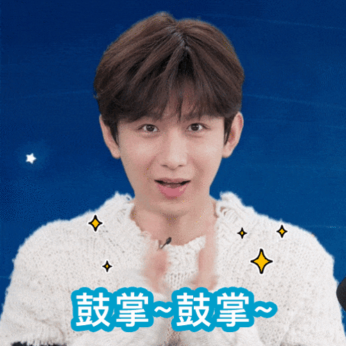 Chinese actor Chengyi Thanhnghi smiles and claps, making a peace sign gesture with both hands.