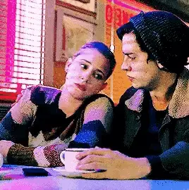 Cheryl Blossom and Veronica Lodge from Riverdale perform a cheerleading routine with pom-poms.