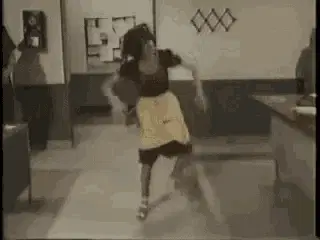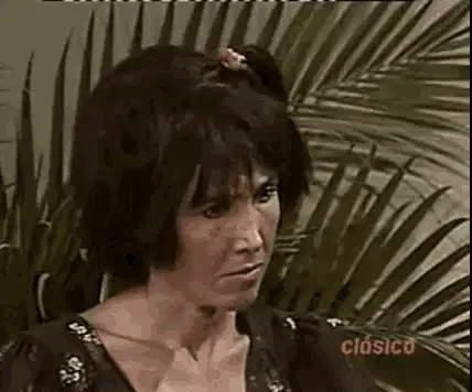 Chimoltrufia from Chespirito makes a series of hilarious and exaggerated facial expressions, ending with her on a table.