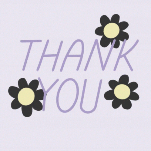 Animated 'Thank You' message by Chiaralbart, featuring purple text and stylized black flowers.