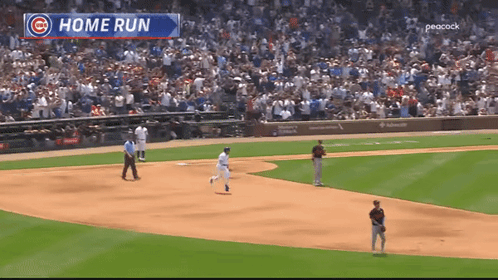 Christopher Morel hits a massive home run for the Chicago Cubs, celebrated by fans at the baseball game.