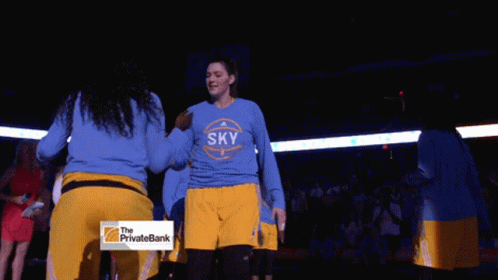 Stefanie Dolson of Chicago Sky dances on the basketball court, wearing her team uniform.