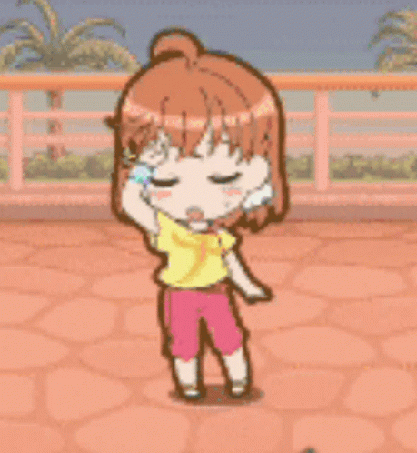Chika Takami, the chibi anime girl from Love Live, looks tired and sleepy, rubbing her eye.