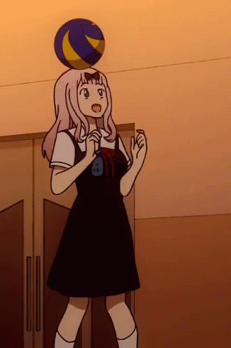 Chika Fujiwara from Kaguya-sama: Love Is War balancing a volleyball on her head.