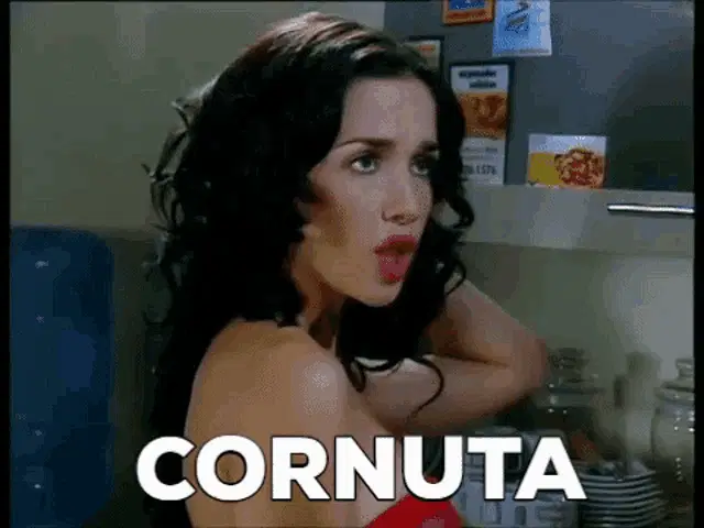 Elderly woman from 'Chi l'ha visto?' exclaims 'Stu' Curnutu!' with an expressive gesture.