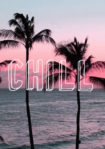 The word 'Chill' displayed on a serene beach with ocean waves, evoking feelings of relaxation and summer.